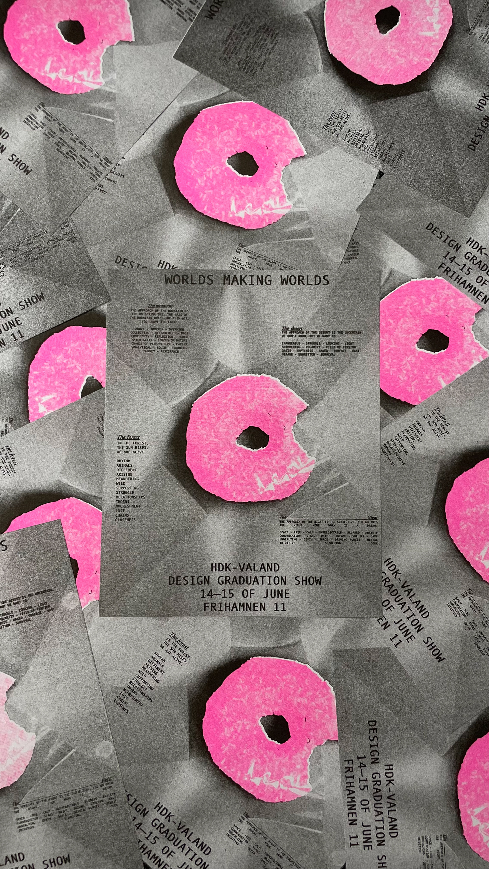 Marketing for the Graduation show at HDK-Valand 2025, with screenprinted and risoprinted posters.
